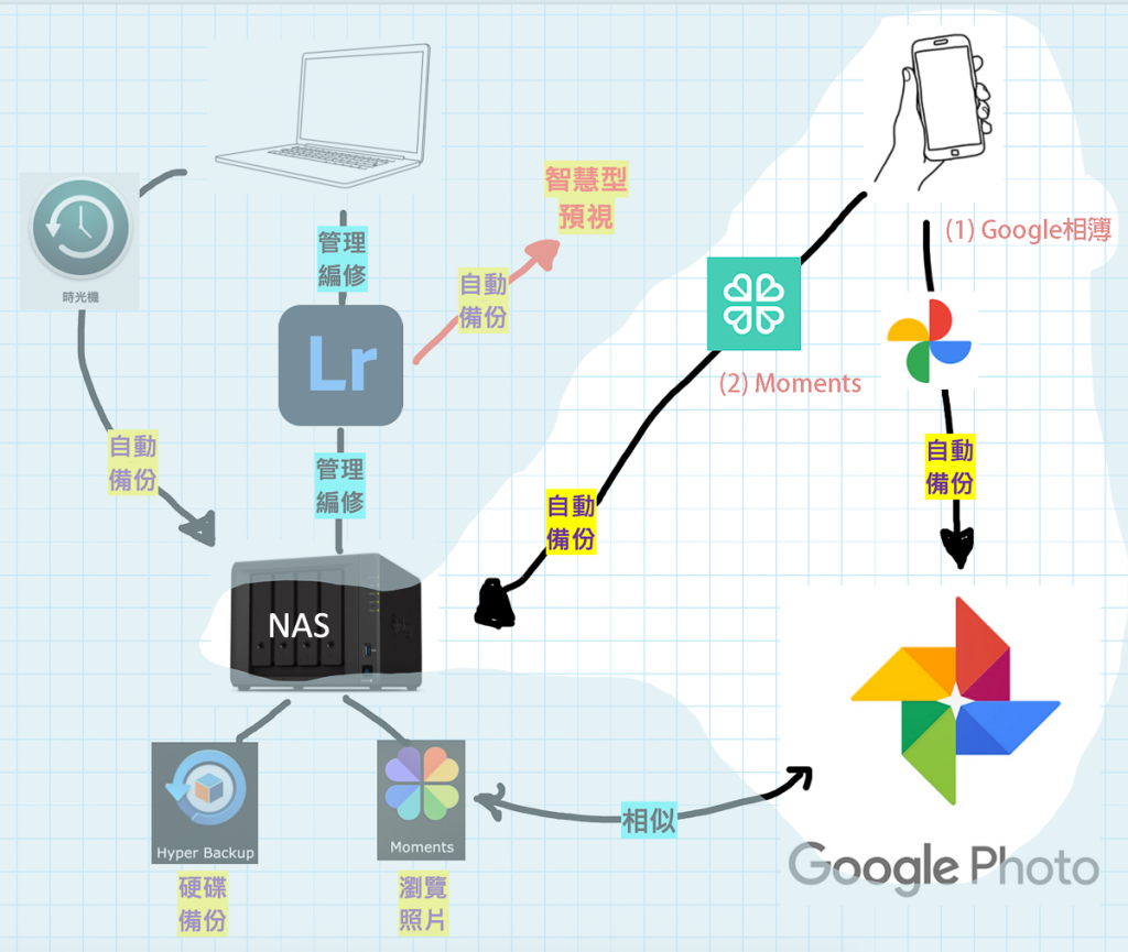 今天來說說適合庶民生活的照片備份,庶民的攝影就是出門照片要拍到爽,回家整理時間越短越好。若能自動備份又可以自動分類,那是最好的了。今天介紹的方法,都是全自動的備份,還可以關鍵字搜尋!