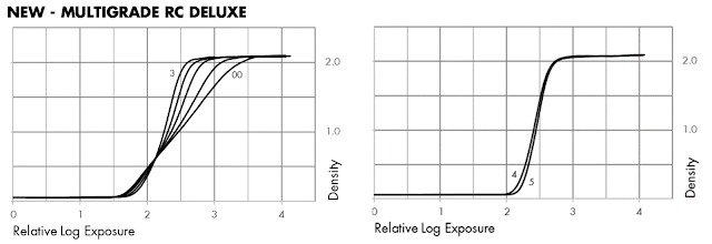我常用的相紙 ILFORD Multigrade Rc Deluxe從原廠的技術資料可知,相紙對於曝光時間的curve profile 類似於軟片,會有foot shoulder的特徵。