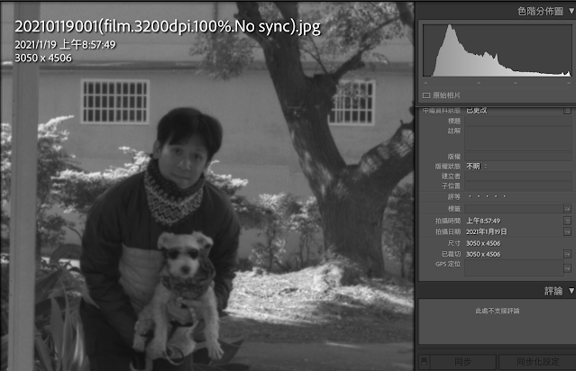 1. Photoshop這個軟體是可以直接控制scanner,在無腦設定下,結果出來直方圖很不好,而且好像只能一次掃一格畫面,太慢了,直接淘汰。(20210119003.Scan.Ps)