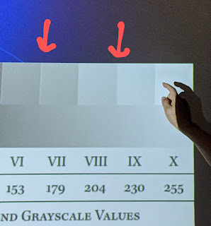 >>>剪影與用光線強調的輪廓線:被攝體的黑,人眼看起來會覺得剪影比較不黑,用光線強調的輪廓線的被攝體就會比較黑 (這又會帶出馬赫帶與赫曼方格理論)