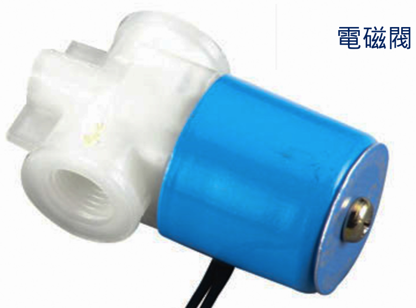 - 電磁閥:電源感應,斷電時,阻斷水路。高壓斷電阻隔水路時,因為還有RO廢水會持續漏水,所以用這個來阻斷馬達的進水。